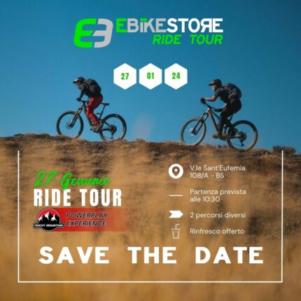 Condividi la tua passione con noi! La prima data confermata per il nostro 1° Ride Tour del 2024 è per Sabato 27 Gennaio 2024. La prima uscita di gruppo dedicata al mondo delle e-bike, con l'occasione unica di assaggiare quattro Powerplay! Clicca Qui per il programma dell'evento e per saperne di più.