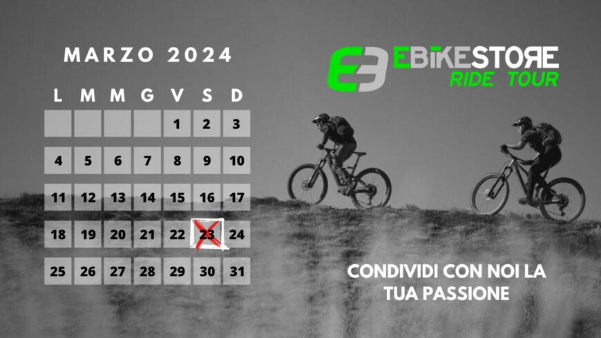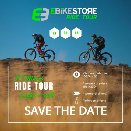 Condividi la tua passione con noi! L'evento del 24 Febbraio dedicato al nostro 2° Ride Tour è stato rimandato definitivamente alla nuova data, confermata per Sabato 23 Marzo 2024. La seconda uscita di gruppo dedicata al mondo delle e-bike, con focus sulle Light e-MTB! Clicca Qui per il programma dell'evento e per saperne di più.