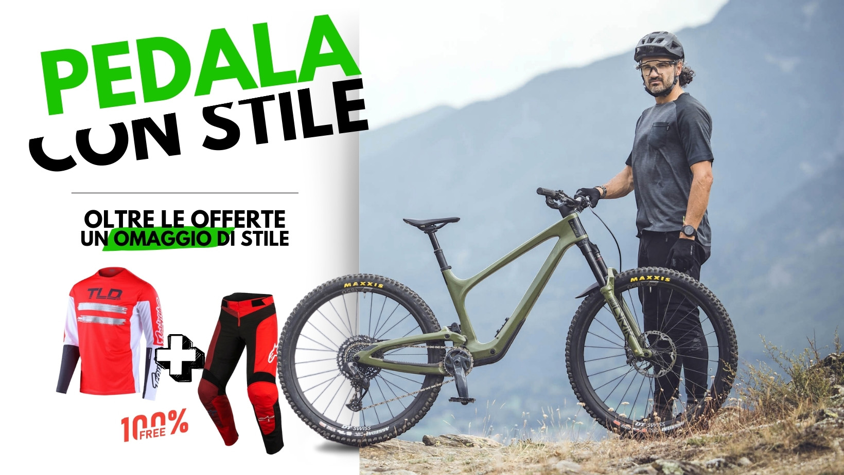 Siamo entusiasti di presentarti la nostra ultima promozione: "Pedala con Stile". Con questa offerta speciale, non solo potrai acquistare la tua bici da sogno, ma riceverai anche un completo abbigliamento a tua scelta, completamente gratuito e in aggiunta a tutte le altre offerte in essere!