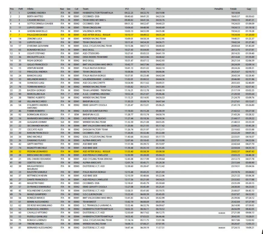 Davide Cappello, reduce da un infortunio alla mano non ancora recuperato al 100%, stringe i denti e conclude 22esimo tra gli junior. Davide Palazzari, nonostante qualche incertezza, trova il ritmo giusto e infila la prima TOP20 della stagione con un ottimo P18.