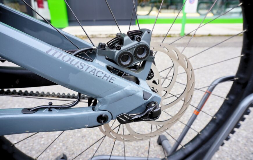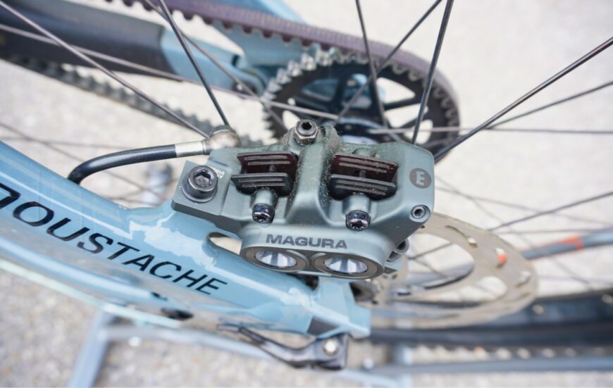 Quando si va forte, fermarsi è una questione seria. Per questo Moustache ha scelto i freni Magura Gustav Pro con dischi da 203 mm e pistoni da 19 mm.