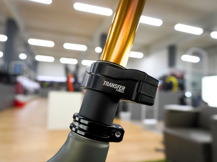 Per il retrotreno, abbiamo optato per il reggisella FOX Transfer Neo Wireless, che aggiunge un ulteriore livello di comfort e praticità alla bici. La possibilità di regolare l'altezza del reggisella in modo wireless non solo migliora l'esperienza di guida, ma consente anche di ridurre il peso complessivo della bici grazie all'assenza di cavi. Questo sistema wireless è altamente reattivo, preciso e affidabile, ideale per chi cerca il massimo in termini di performance e tecnologia.