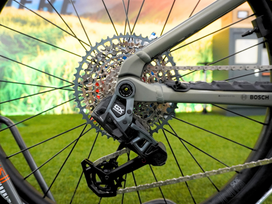 Per il cambio, è stato scelto il SRAM GX Eagle Transmission Groupset, una soluzione che combina alta qualità e prestazioni elevate. Il gruppo a 12 velocità offre una gamma di rapporti che copre tutte le esigenze, dal sentiero tecnico alla lunga salita. La trasmissione GX Eagle è nota per la sua resistenza e precisione, offrendo cambi di marcia fluidi e veloci anche sotto sforzo, rendendo ogni pedalata più efficiente e senza intoppi.