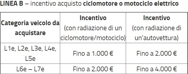 - Fino a 1.000€ con rottamazione di ciclomotore o motociclo