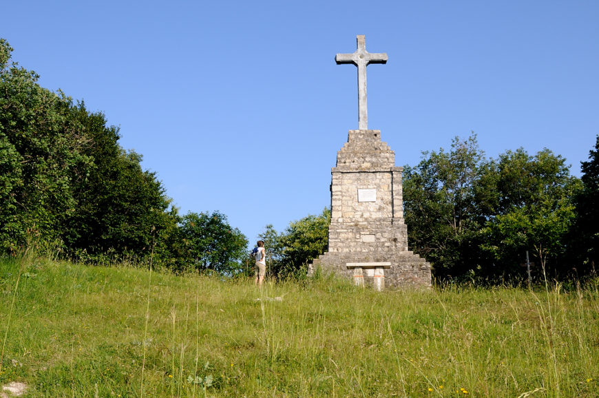 Fate molta attenzione a questo pezzo perchè ci passerete due volte. Il sentiero si restringe e sale decisamente. Giungiamo alla croce del Monte Peso posta a 483 mt.