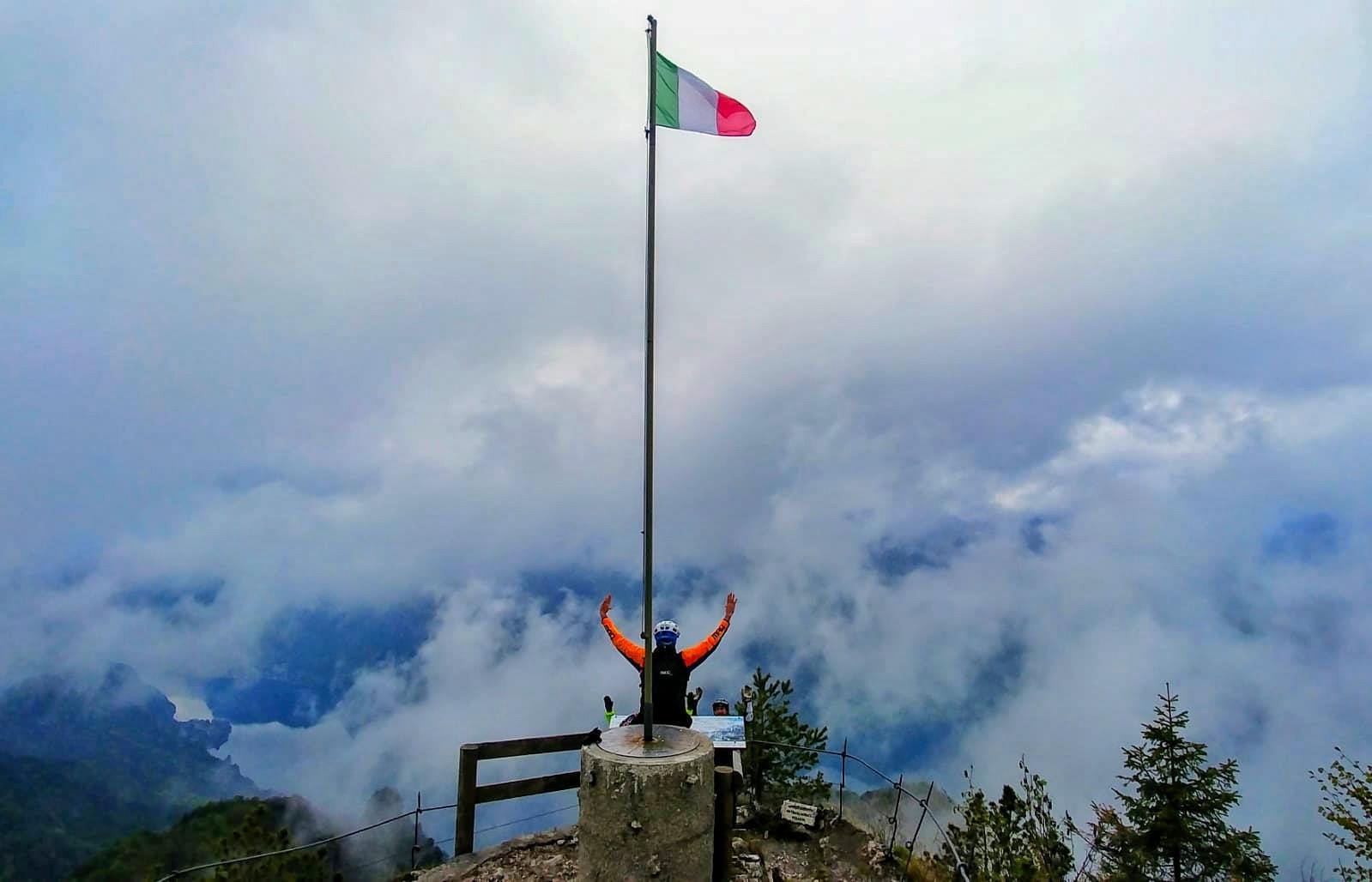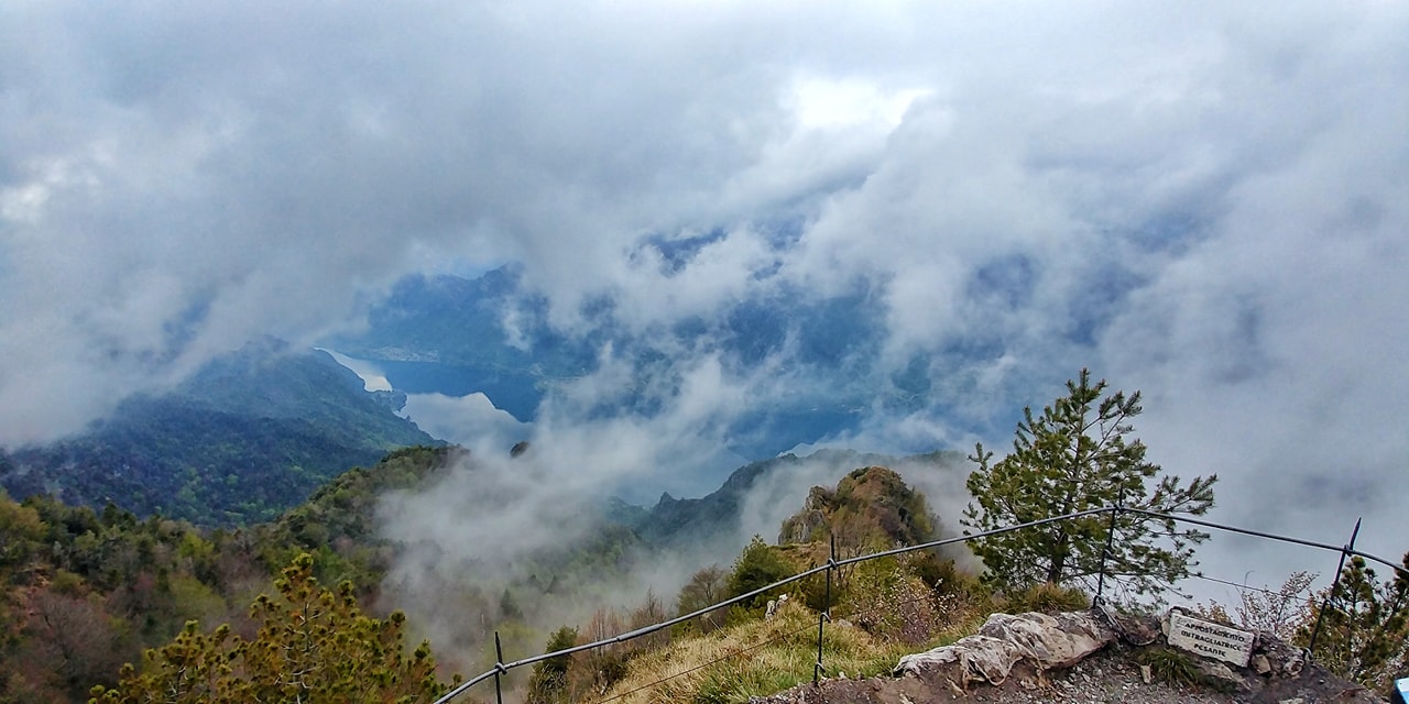 Lasciamo le mtb ai piedi della scalinata che farete con pochi gradini e per incanto il respiro vi mancherà. Davanti a voi una visione spettacolare a 360° su tutto l’Idro Lake e le Apli, nonché i monti del Garda Lake come il Baldo, Il Pizzocolo e il Tombea. Anche qui è presente un indicatore dei nomi delle montagne: se siete fortunati dietro al Guglielmo, vedrete anche il Monte Rosa mentre a sud-est gli Appennini.