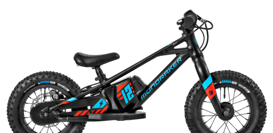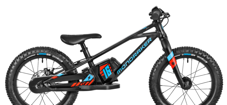 Motore elettrico da 250 W programmabile dal tuo smartphone, ruote fat da 12" o da 16" in base alla dimensione, freno a disco idraulico e telaio dal design Mondraker, una piccola crafty con acceleratore!