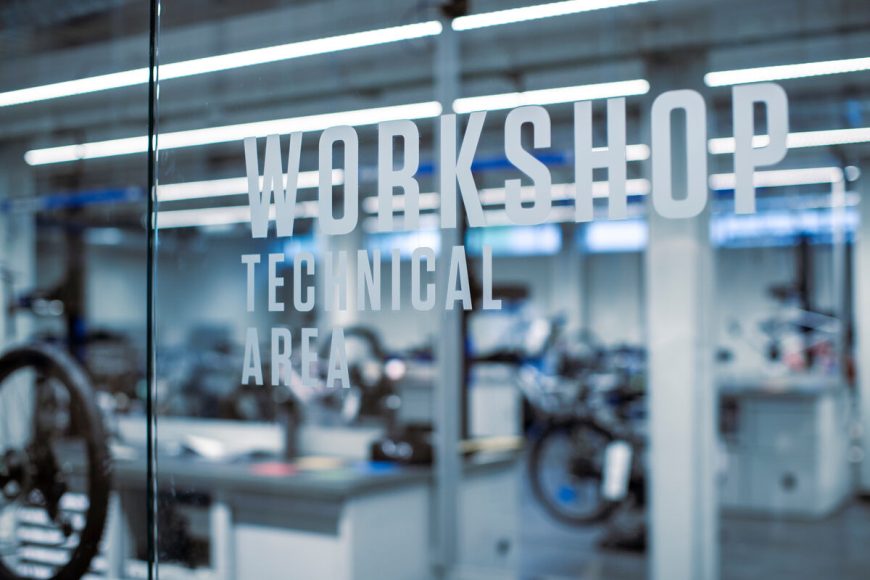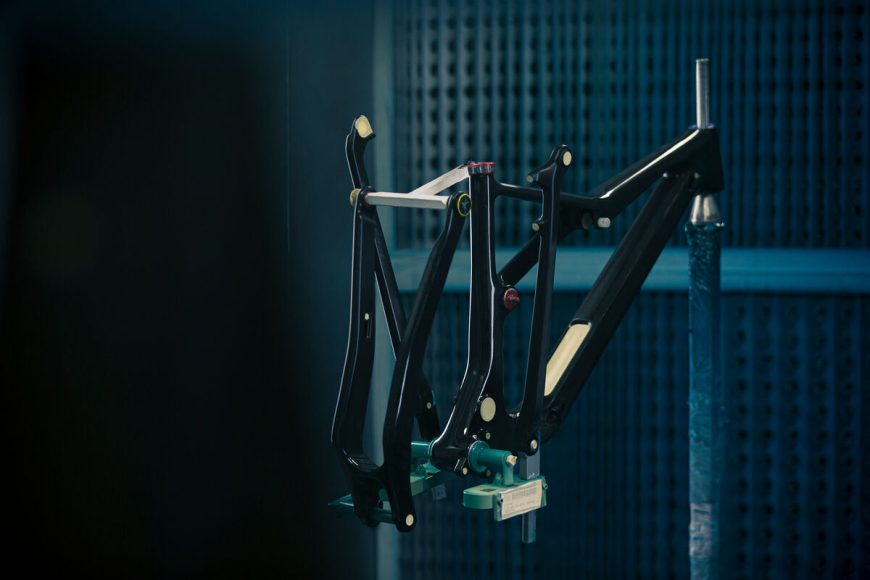 In questo settore ci sono prototipi o bici a catalogo, a campione vengono messi sotto tortura telai e componenti, tutti portati all'estremo con test davvero al limite dell'immaginazione: dagli ammortizzatori che mettono in torsione il telaio, alla vasca d'acqua dolce o marina che testa la durata di ogni particolare. Quest'area è in continuo lavoro, 24 ore su 24!