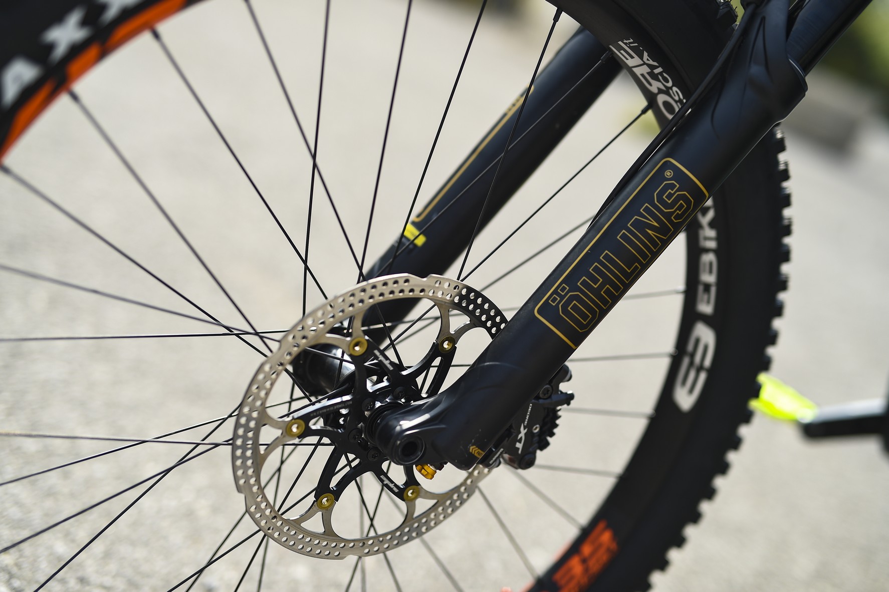 Grazie alla collaborazione che ci lega con Ohlins e Andreani Group, abbiamo sostituito le già ottime forcelle FOX 36 Performance con una Ohlins RXF 36 da 160 mm. Sin dalla prima uscita abbiamo notato una scorrevolezza maggiore sopratutto nella primissima parte ma anche una flessione diversa dell'avantreno.