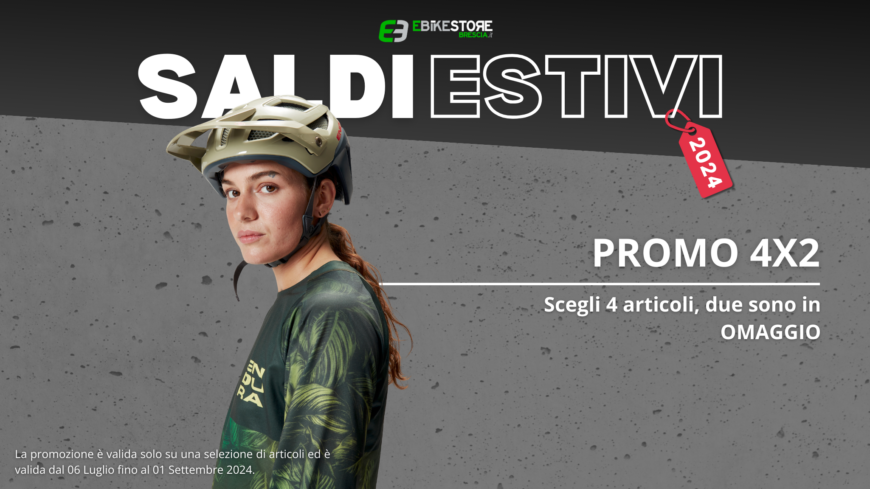 Come per le bici ed E-Bike, anche nella nostra selezione di Abbigliamento e Accessori puoi avere una super promo 4x2. Scegli 4 prodotti tra oltre 2000 articoli, i 2 più economici sono GRATIS.